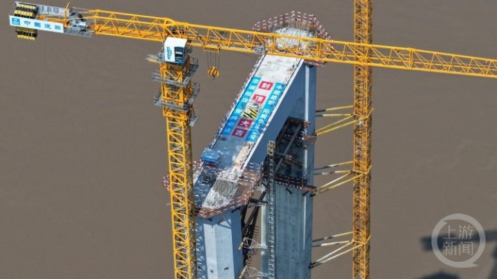 “这个轨道专用大桥南主塔位于长江堆积地貌,面临富水超厚卵石层等复杂地质挑战,项目团队采用旋挖钻机引孔后插打施工拉森钢板桩围堰的工艺,较传统围堰节省工期近2个月。”代龙介绍,智能造塔机的应用让高空作业更安全高效,该设备集成位移、温湿度等传感器,具备四项智能保护功能,极大地提高了主塔高空作业的安全系数,最终塔柱线形成型误差不超过2毫米。