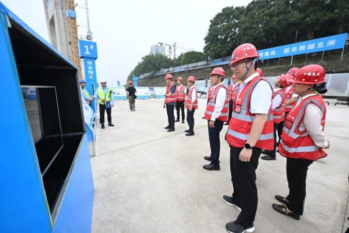 当天,来自全国建筑行业的百余名专家、学者齐聚重庆,实地观摩了江跳线过江段南主塔、南锚碇、几江站(含盾构始发井)和圣泉隧道等关键工点,听取项目设计特色、施工难点以及质量管控、科技应用等方面具体措施。