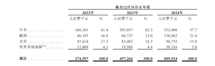 目前,卧安机器人的海外销售占据其整体营收的95%。其中,日本市场表现尤为突出,贡献了将近六成的收入,已成为推动公司全球增长的关键动力源。